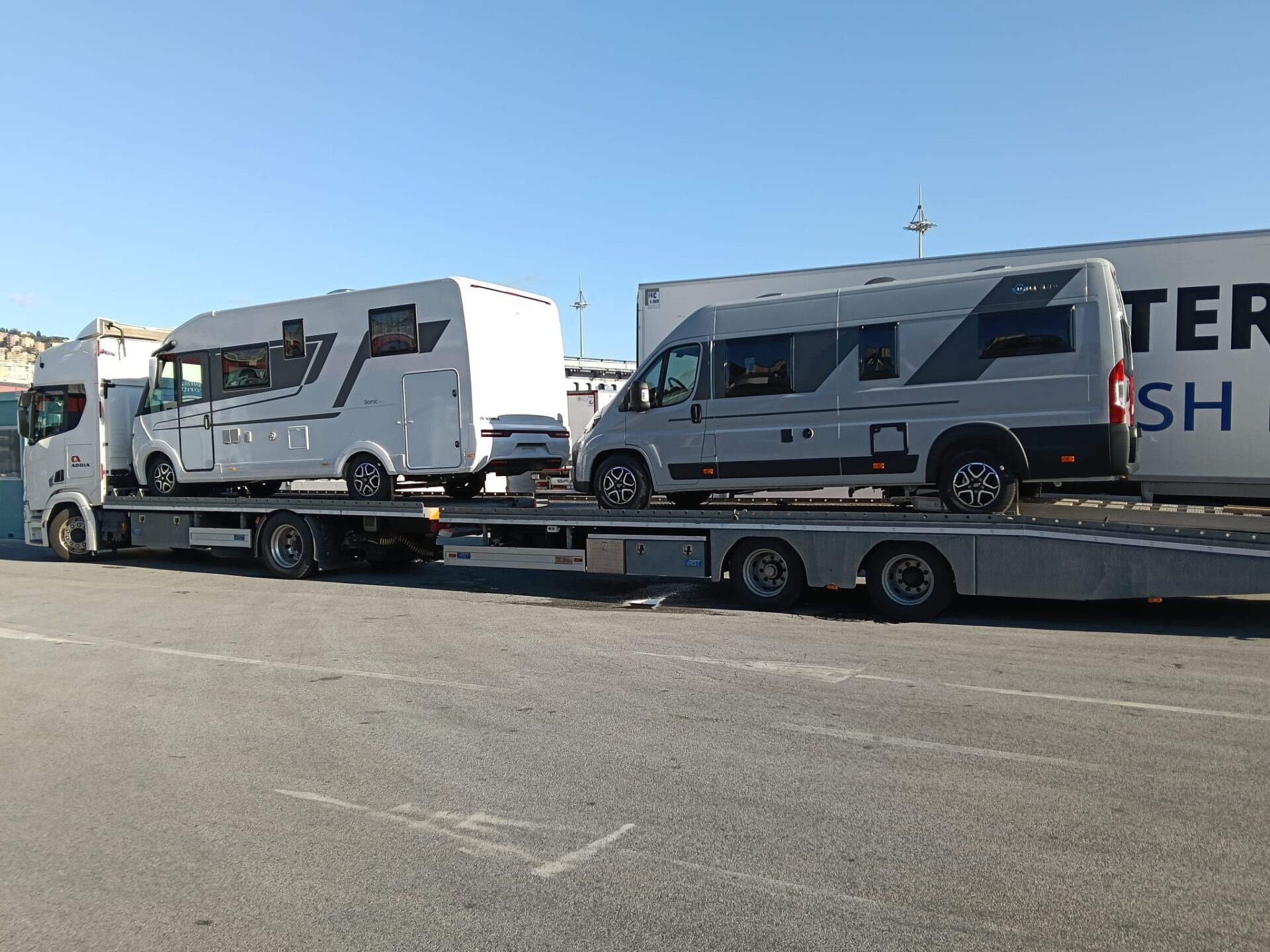 Al porto di Genova in attesa di essere imbarcati ci sono i nuovi camper Adria e Sun Living dell’edizione 2026.