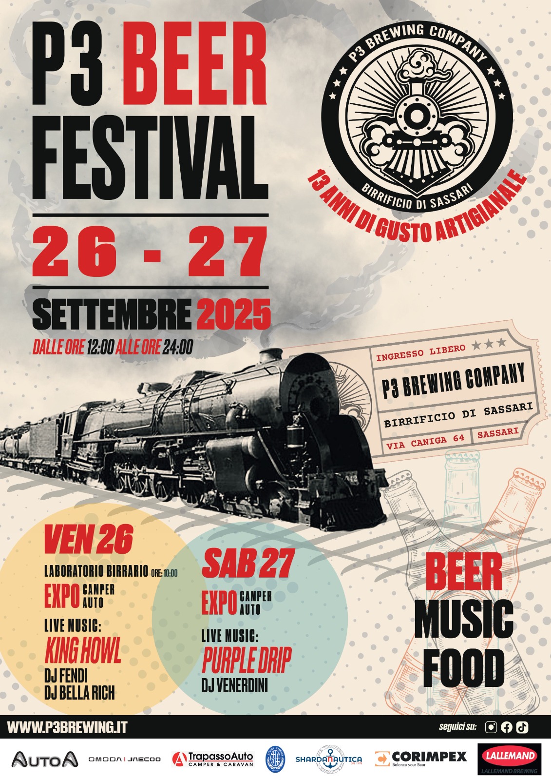 Direttamente dal Salone del Camper di Parma ci troverete al Birrificio P3 Brewwing Company a Sassari in via Caniga 64 per festeggiare i 13 anni di gusto artigianale.